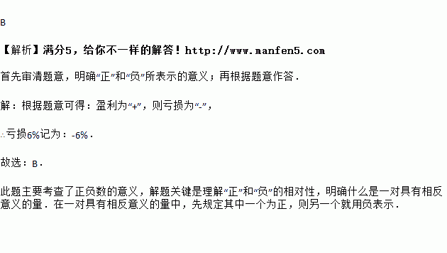 如果“盈利10%”记为+10%,那么“亏损6%”记为