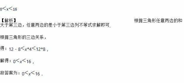 以长为8,12,x+4的三条线段为边可构成三角形,x的取值范围是_____.