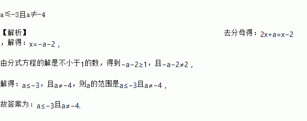 关于x的方程的解是不小于1的数,则a的取值范围是_______