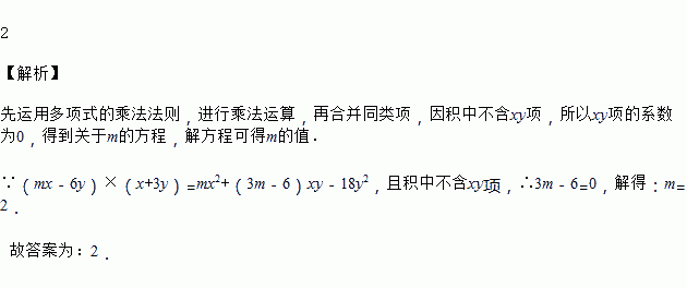 若(mx-6y)与(x+3y)的积中不含xy项,则m的值是________.