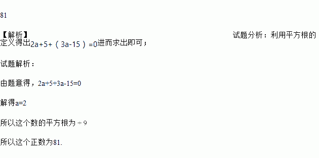 已知一个正数的两个平方根分别为2a+5和3a-15,求这个正数.