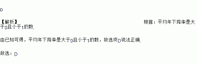 C. 年平均下降率为1.8%,不符合题意 D. 年平均下降率为180%,不符合题意