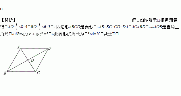 已知菱形的两条对角线的长分别是6和8,则菱形的周长是( )