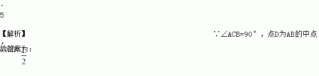如图,在Rt△ABC中,∠ACB=90°,AB=10 cm,D为AB的中点,则CD=____________ cm.