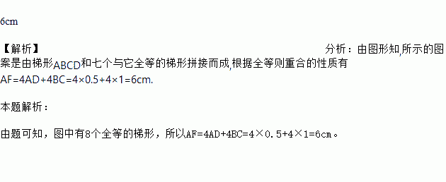 如图所示的图案是由全等的图形拼成的,其中AD=0.5cm,BC=1cm,则AF的长度为多少?