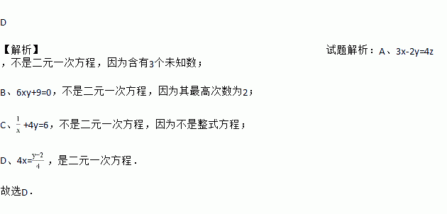 A. 3x-2y=4z B. 6xy+9=0 C. D. 4x=