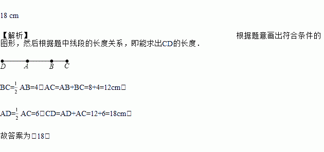 延长线段AB到C,使BC=AB;反向延长线段AC到D,使AD=AC.若AB=8 cm,则CD=________.