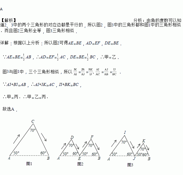 A. 甲=乙=丙 B. 甲<乙<丙 C. 乙<丙<甲 D. 丙<乙<甲