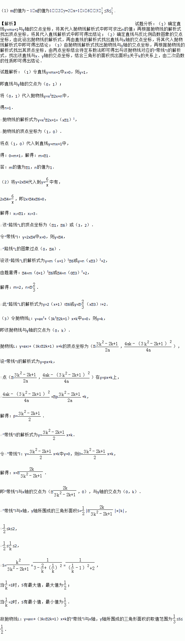 ≤k≤2时,求抛物线L:y=ax2+(3k2﹣2k+1)x+k的“带线”l与x轴,y轴所围成的三角形面积的取值范围.