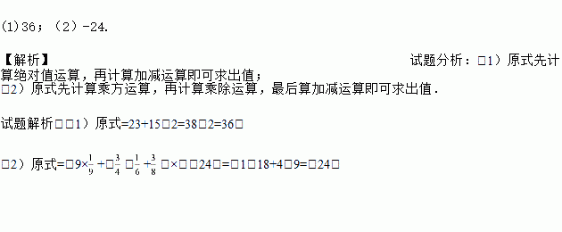 (1)|﹣23|﹣(﹣15)﹣|﹣4