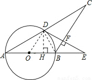 【答案】分析:(1)连接圆心和切点,利用平行,OF⊥CB可证得∠ODF=90°;