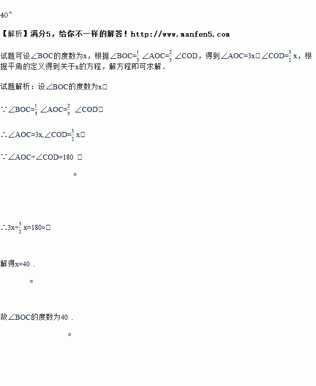 如图,已知点O是直线AD上一点,且∠BOC=∠AOC=∠COD.求∠BOC的度数.