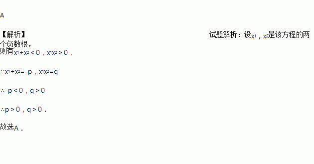 关于x的一元二次方程x2+px+q=0的两根同为负数,则( )