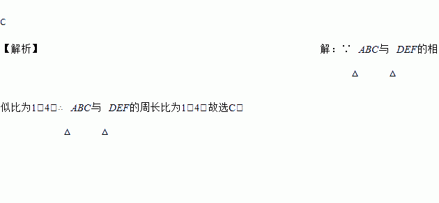 △ABC与△DEF的相似比为1:4,则△ABC与△DEF的周长比为( )