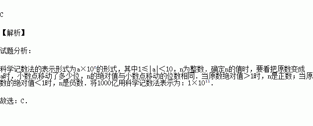 可燃冰,学名叫“天然气水合物”,是一种高效清洁、储量巨大的新能源,据报道,仅我国可燃冰预测远景资源量就超过了1000亿吨油当量.将1000亿用科学记数法可表示为( ).