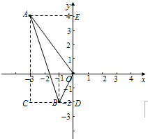 分析:根据平面直角坐标系找出点A、B、C的位置,然后顺次连接即可;再作出△ABO所在的矩形,然后根据三角形的面积等于矩形的面积减去四周三个小直角三角形的面积,然后进行计算即可得解.
