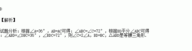 如图,△ABC中,∠A=36°,AB=AC,BD平分∠ABC,下列结论错误的是( )