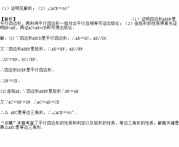 (2) 若AC=BF=DF,求∠ACE的度数.