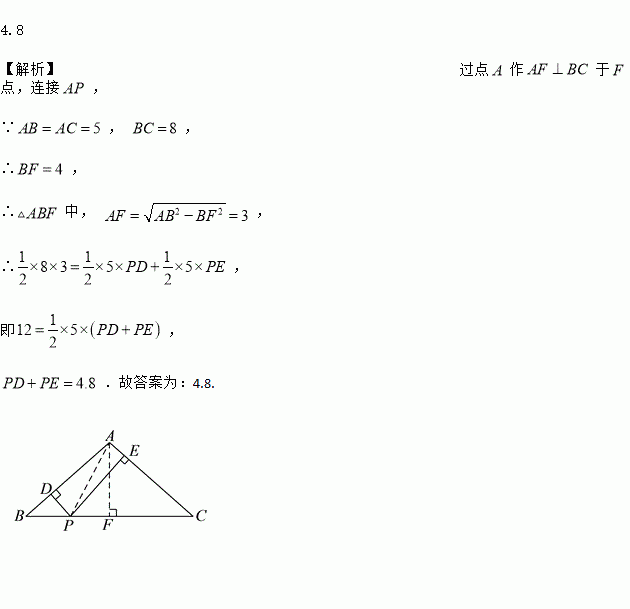 如图,在中, , ,点是上的动点,过点作于点, 于点,则__________.