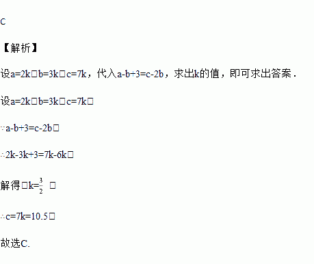 若a:b:c=2:3:7,且a-b+3=c-2b , 则c=( )