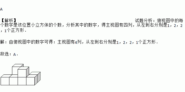 由若干个相同的小正方体搭成的一个几何体的俯视图如图,小正方形中的数字表示该位置的小正方体的个数,则这个几何体的主视图是( )