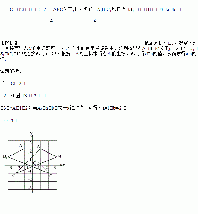 (2)作△ABC关于y轴对称的△A1B1C1,并写出B1的坐标;