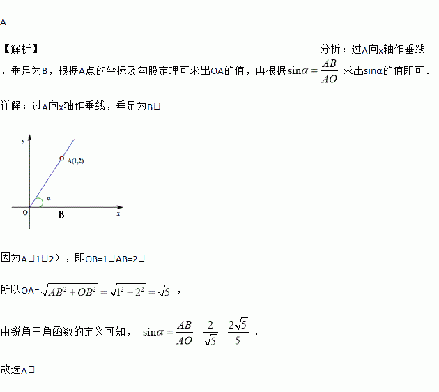 如图,在平面直角坐标系中,∠α的一边与轴正半轴重合,顶点为坐标原点,另一边过点,那么sinα的值为( )