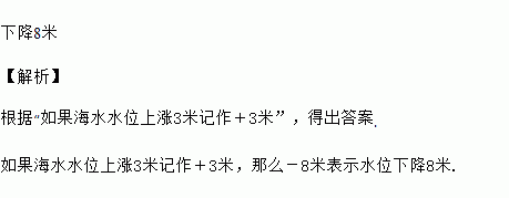如果海水水位上涨3米记作+3米,那么-8米表示______________.