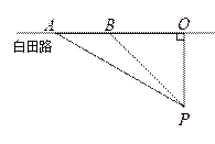 校车安全是近几年社会关注的热门话题,其中超载和超速行驶是校车事故的主要原因.小亮和同学尝试用自己所学的三角函数知识检测校车是否超速,如下图,观测点设在到白田路的距离为100米的点P处.这时,一辆校车由西向东匀速行驶,测得此校车从A处行驶到B处所用的时间为4秒,且∠APO=60°,∠BPO =45°.