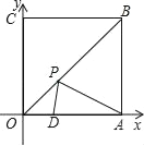 如图所示,四边形OABC为正方形,边长为6,点A、C分别在x轴,y轴的正半轴上,点D在OA上,且D点的坐标为(2,0),P是OB上的一个动点,试求PD+PA和的最小值是_____.
