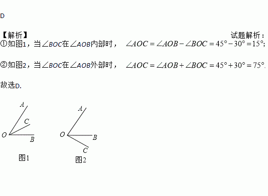 A. 15° B. 30° C. 75° D. 15°或75°