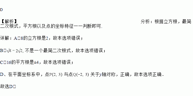 A. 8的立方根是±2