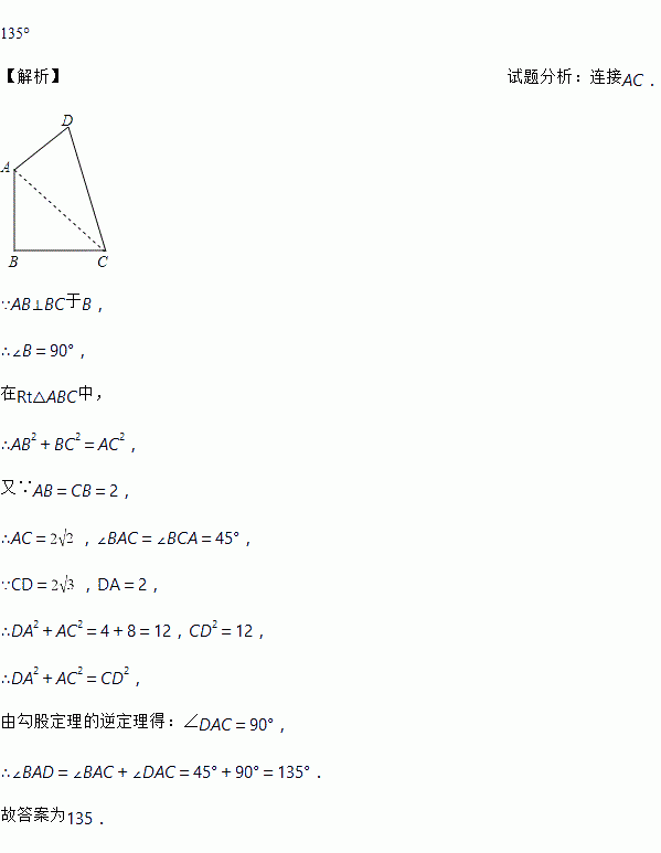 ,2,且AB⊥BC,则∠BAD的度数等于____.