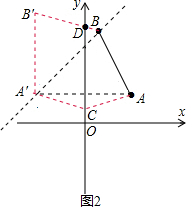 (2)解:如图2,作点A关于x轴的对称点A′,则A′的坐标为(-3,2),把A′向上平移4个单位得到点B'(-3,6),连接BB′,与y轴交于点D,