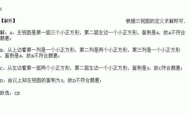 C. 左视图的面积为3 D. 三个视图的面积都为4