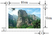 在一幅长为80cm,宽为50cm的矩形风景画的四周镶一条相同宽度的金色纸边,制成一幅矩形挂图,如图所示,如果要使整个挂图的面积是5400cm2,设金色纸边的宽为cm,那么满足的方程是( )