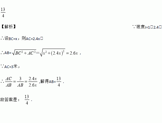 如图,如果在坡度: 的斜坡上两棵树间的水平距离AC为3米,那么两树间的坡面距离AB是______ 米