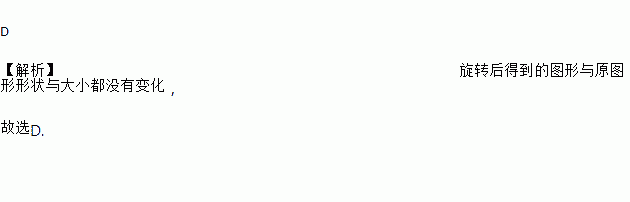 D 【解析】旋转后得到的图形与原图形形状与大小都没有变化, 故选D.