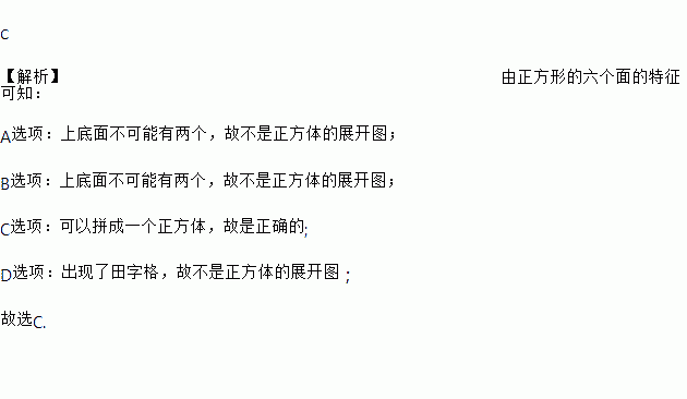 将一个正方体沿某些棱展开后,能够得到的平面图形是( ).