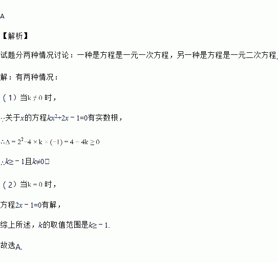 关于x的方程kx2+2x﹣1=0有实数根,则k的取值范围是( )