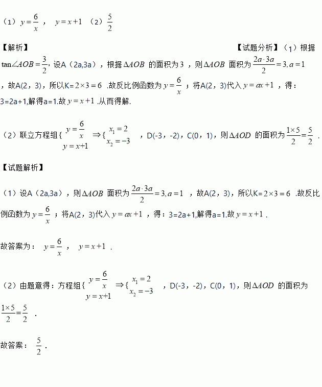 (1)求反比例函数和一次函数的解析式;