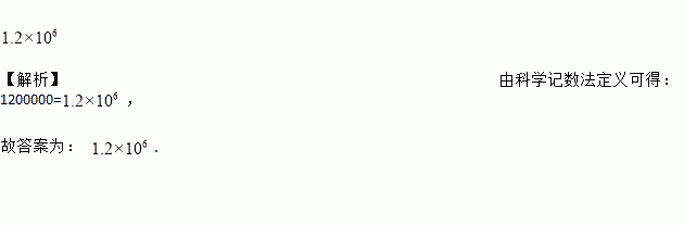 2017年阳澄湖大闸蟹年产量约为1200000kg,该数据用科学计数法可表________kg.