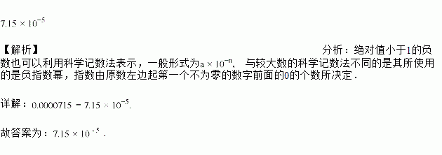 测得某人的一根头发直径约为0.0000715米,将0.0000715用科学记数法表示为_____.