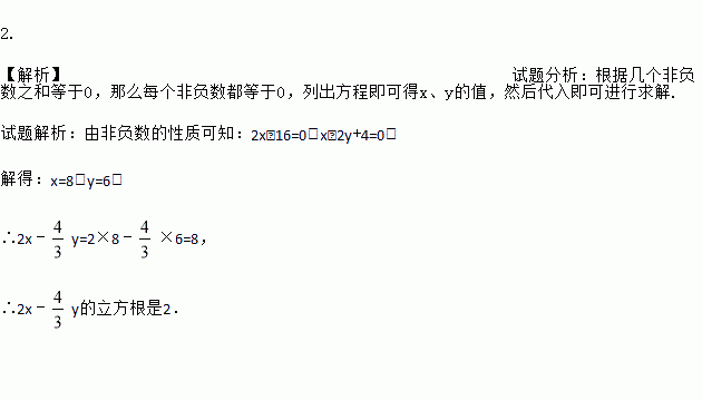 已知实数x、y满足,求2x﹣的立方根.