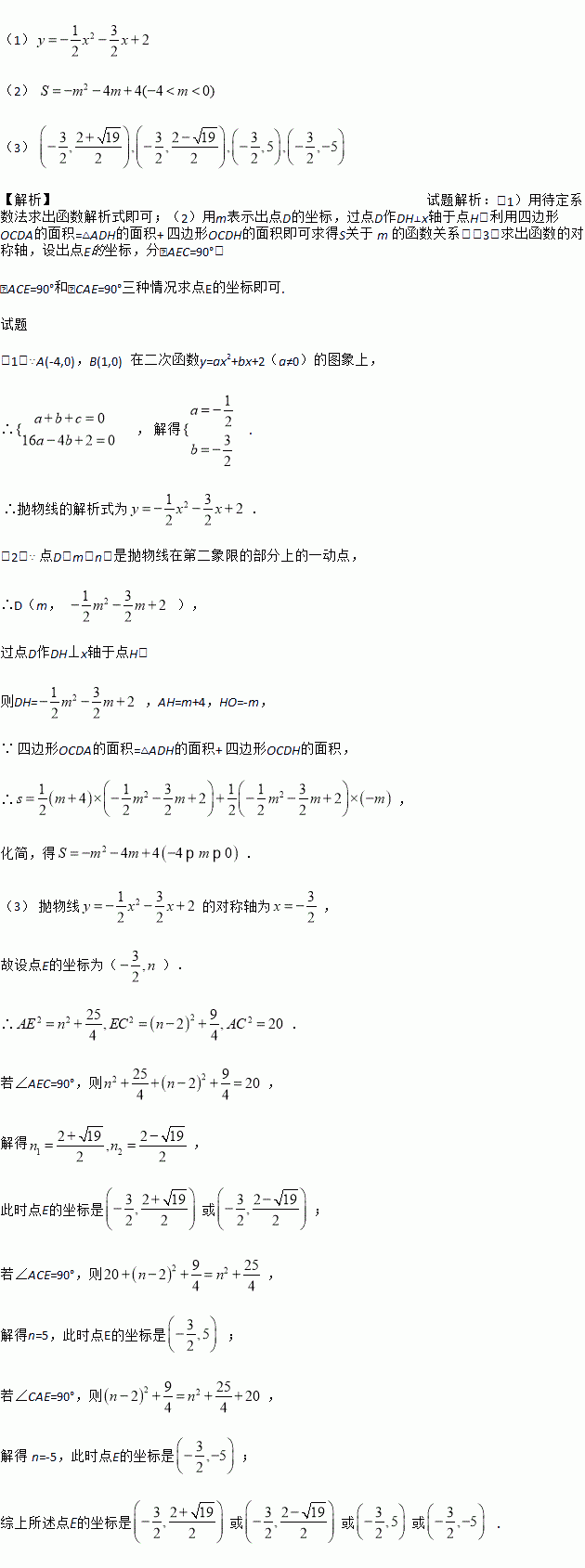 (3)若点 E 为抛物线对称轴上任意一点,当以 A,C,E 为顶点的三角形是直角三角形时,请求出满足条件的所有点 E 的坐标.