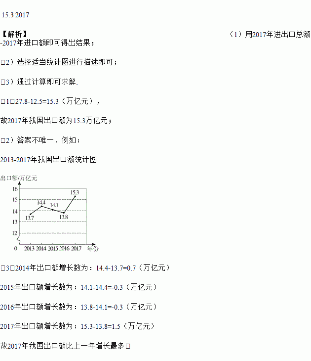 (2)请选择适当的统计图描述2013---2017年我国出口额,并在图中标明相应数据;