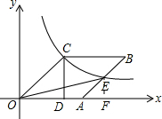 12.分析 过E作EF垂直于x轴,由OD的长得到C的横坐标,代入反比例解析式求出纵坐标,确定出CD的长,利用勾股定理求出OC的长,即为OA的长,设EF=AF=x,表示出E坐标,代入反比例解析式求出x的值,确定出EF的长,即可求出三角形OAE面积.