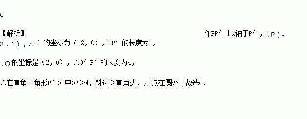 直角坐标系中,圆心O'的坐标是(2,0),的半径是4,则点P(-2,1)与⊙O'的位置关系是( )