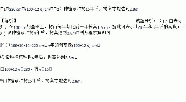 ⑵ 种植该种树多少年后,树高才能达到2.8m?