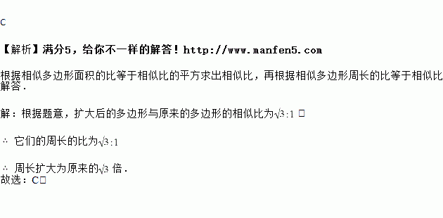 若一个多边形放大后与原多边形位似,且面积放大为原来的倍,则周长放大为原来的( )